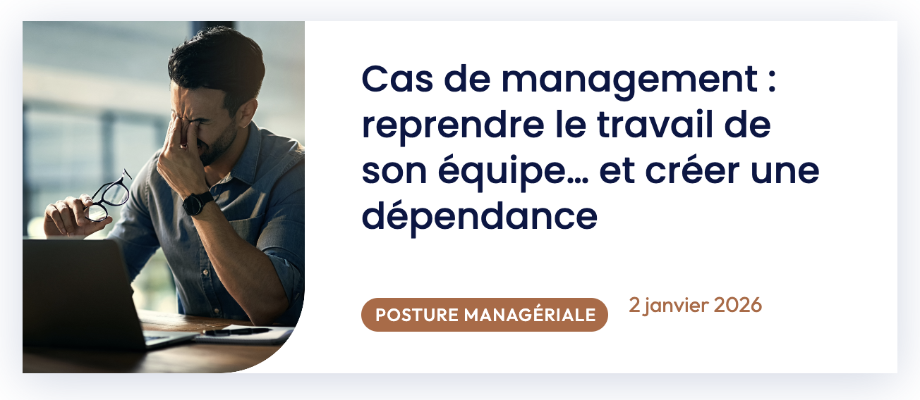 Pour prendre du recul, clarifier une situation ou avancer sans attendre, nous mettons à disposition des ressources gratuites. Des formats courts, concrets, pensés pour être utilisés dans la réalité du quotidien managérial.